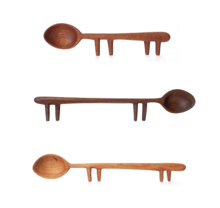 Sculptural spoon objects from various domestic hardwoods and offcuts.
